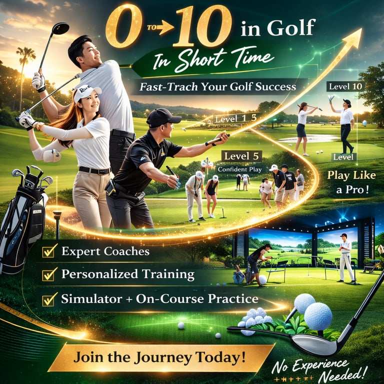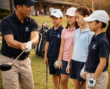 RS Academy Tackles These Pain Points with the “5 Dimensions Development System” 5 Dimensions for Balanced Development (Full Swing / Around the Green / Putting / Rules & Etiquette / Scoring (On-Course Performance). Equipped with a Level 1–10 system that comes with a clear Checklist for accurate performance measurement on the course (Practice → Performance) according to the Academy's standard structure